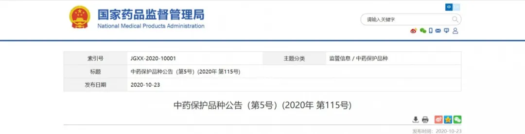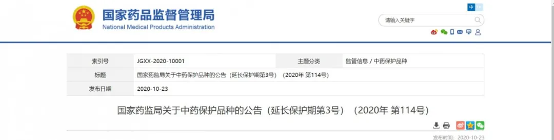 10月23日國家藥監局發布中藥保護品種的公告(延長保護期第3號)(2020年第114號)和 中藥保護品種公告(第5號)(2020年第115號)  。甘肅普安制藥股份有限公司的“宣肺止嗽合劑”,保護級別為2,保護期限為7年。