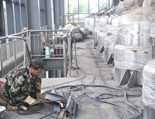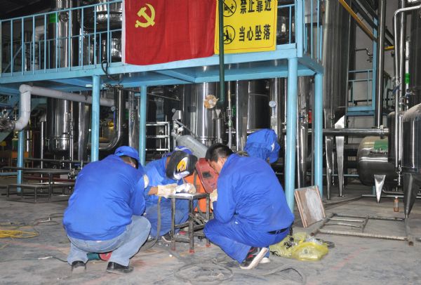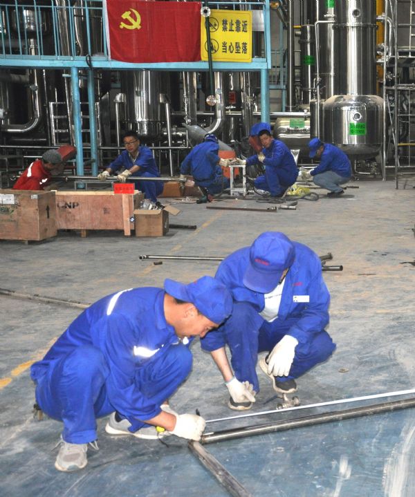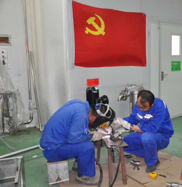 7月中旬,公司正式停機,公司領導、生產管理部、維修班及公司技術人員成立了技改小組,對車間廠房、設備設施及管線等進行施工安裝。為了保證項目進度,確保擴產改造工程順利進行,公司黨員充分發揮黨員先鋒模范作用,積極開展技術傳幫帶,自發組織設立了三個“黨員示范崗”。黨員領導干部帶頭工作在一線,帶領職工齊心協力攻克難題,不辭辛勞的加班加點工作。截至7月22日,提取車間廠房擴建、提取罐、濃縮罐等已安裝完成,部分管線也已完成更換,新增的管道正在進行安裝;配制灌裝車間的功能間擴建已完成,配制罐和純化水儲罐也已安裝完成,正在進行管線連接,空調系統的安裝也在同時進行。