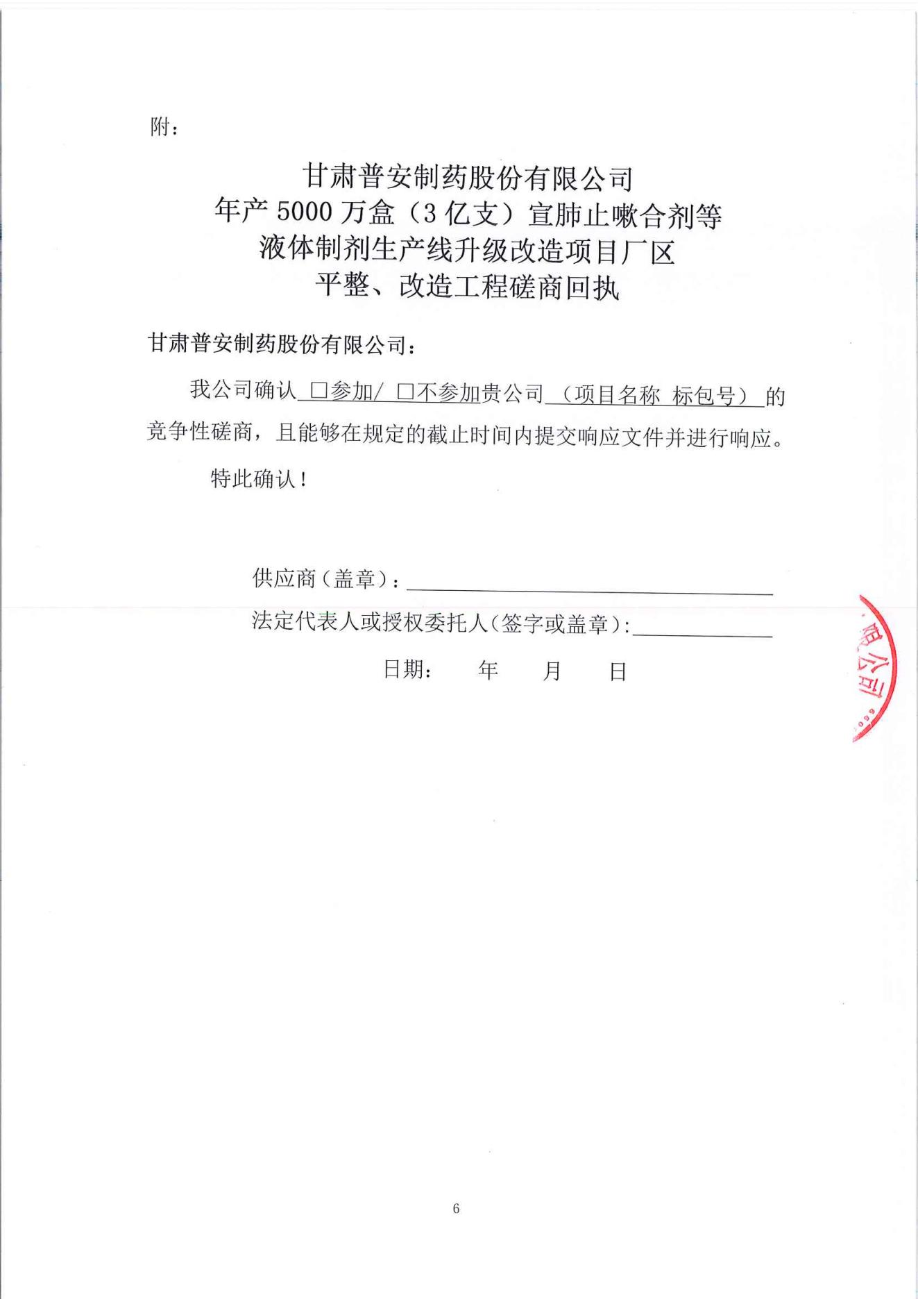 甘肅普安制藥股份有限公司年產(chǎn)5000萬盒(3億支)宣肺止嗽合劑等液體制劑生產(chǎn)線升級改造項(xiàng)目廠區(qū)平整、改造工程競爭性磋商公告