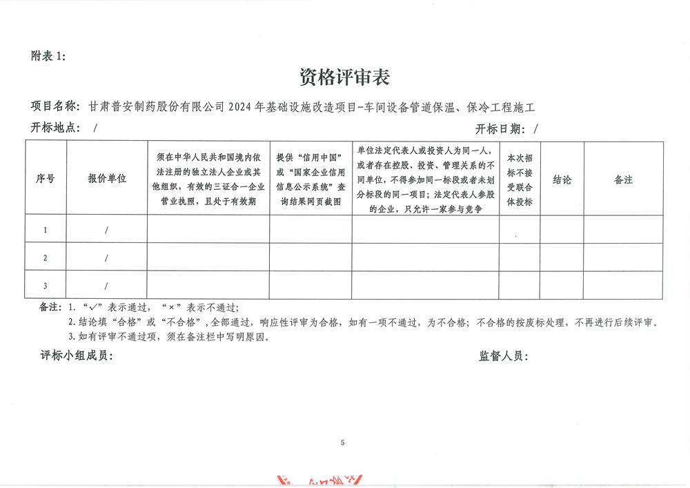甘肅普安制藥股份有限公司2024年基礎(chǔ)設(shè)施改造項(xiàng)目-車間設(shè)備管道保溫、保冷工程施工招標(biāo)公告