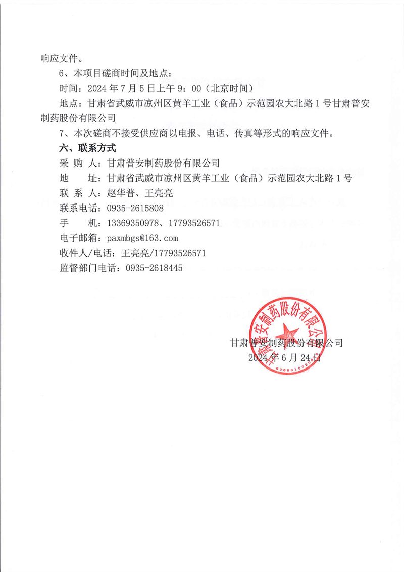 甘肅普安制藥股份有限公司2024年基礎(chǔ)設(shè)施改造項(xiàng)目鋁箔封口檢測(cè)機(jī)設(shè)備采購(gòu)競(jìng)爭(zhēng)性磋商公告