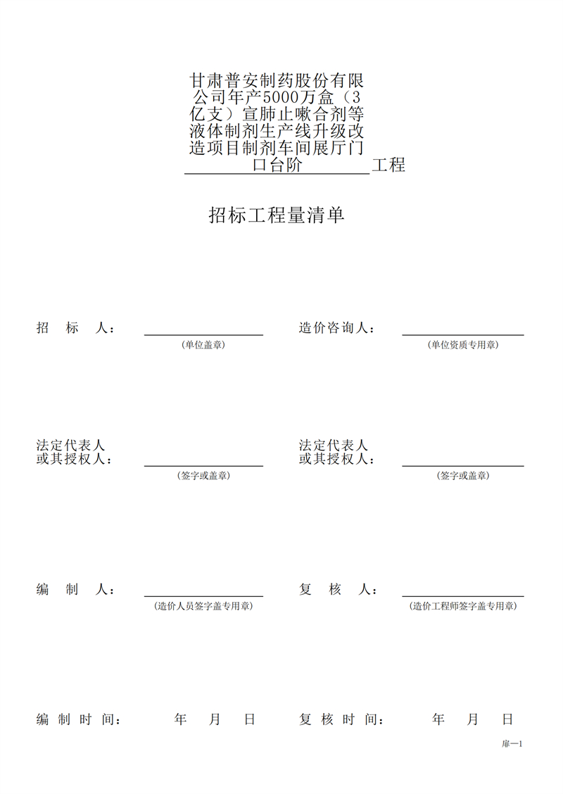 甘肅普安制藥股份有限公司年產(chǎn)5000萬盒(3億支)宣肺止嗽合劑等液體制劑生產(chǎn)線升級(jí)改造項(xiàng)目制劑車間展廳門口臺(tái)階工程招標(biāo)公告