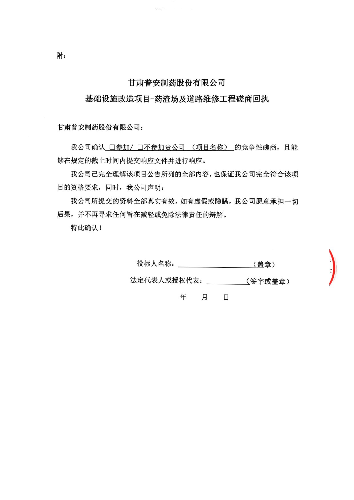 甘肅普安制藥股份有限公司2025年基礎設施改造項目-藥渣場及道路維修工程競爭性磋商公告